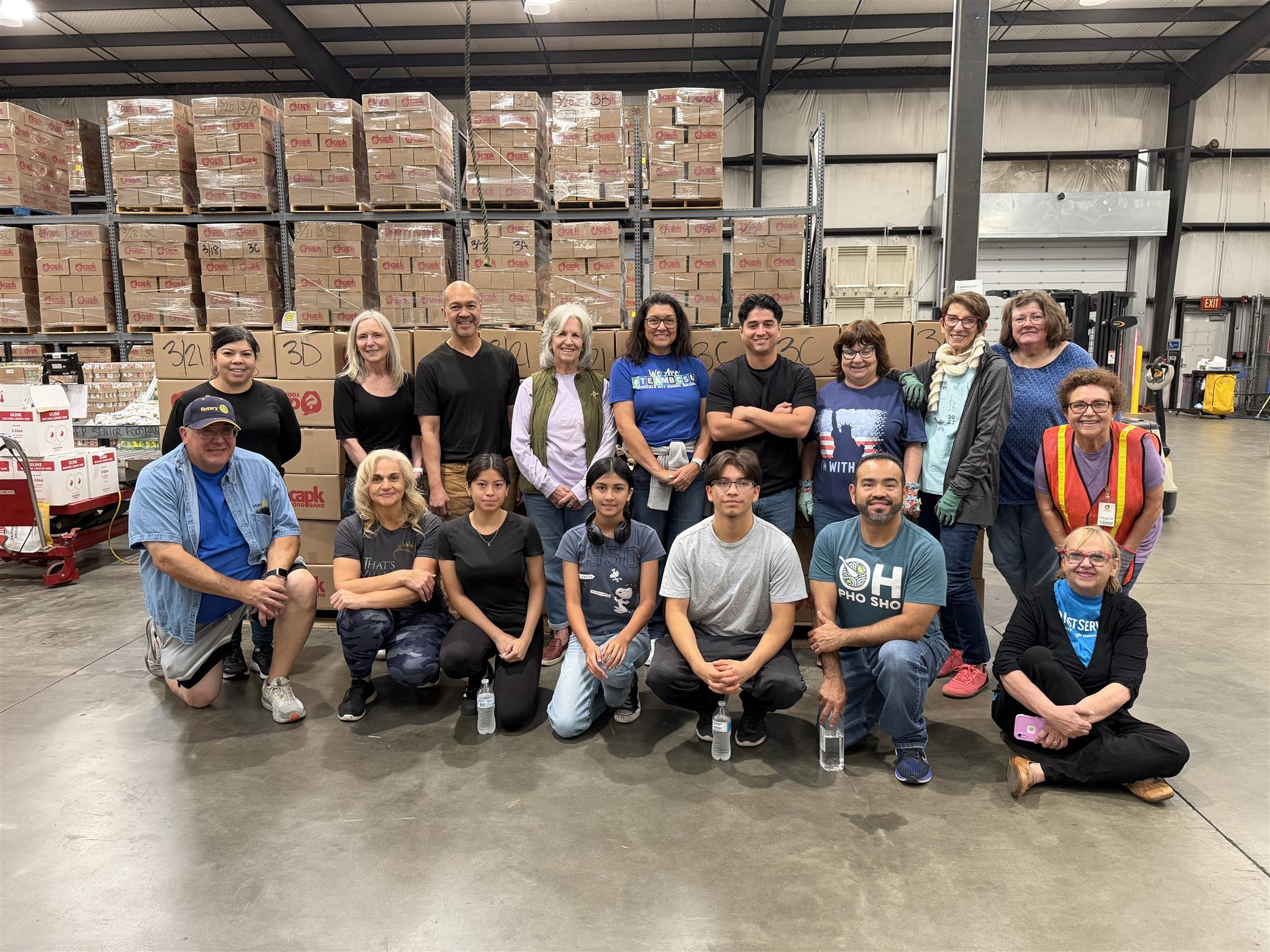 Group Photo includes Rotarians from Bakersfield East and other volunteers at CAPK Food Bank