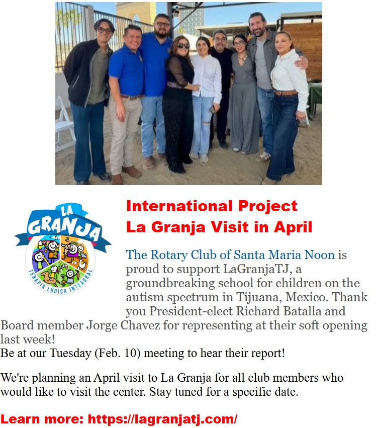The Rotary Club of Santa Maria has supported LaGranja Tijuana https://lagranjatj.com for two years with a district grant.